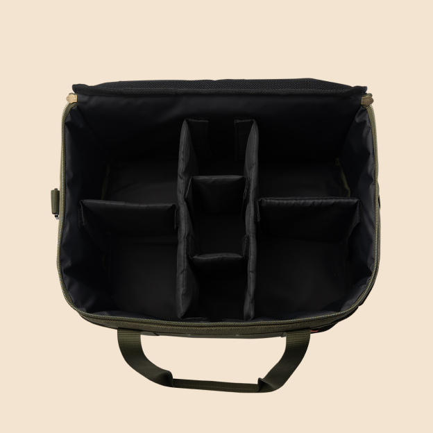 The Cargo Container Custom Bag is a storage bag optimized various camping supplies such as isobutane gas canister, butane gas canister, lantern and many more. It has a 6T soft foam that absorbs shock and safely protects the storage on the top, bottom and sides of the bag. It also has 6 separate compartment dividers of different length inside, which can be adjusted to fit the volume and length of the storage and secure it from bumping into each other or items moving around inside the bag.