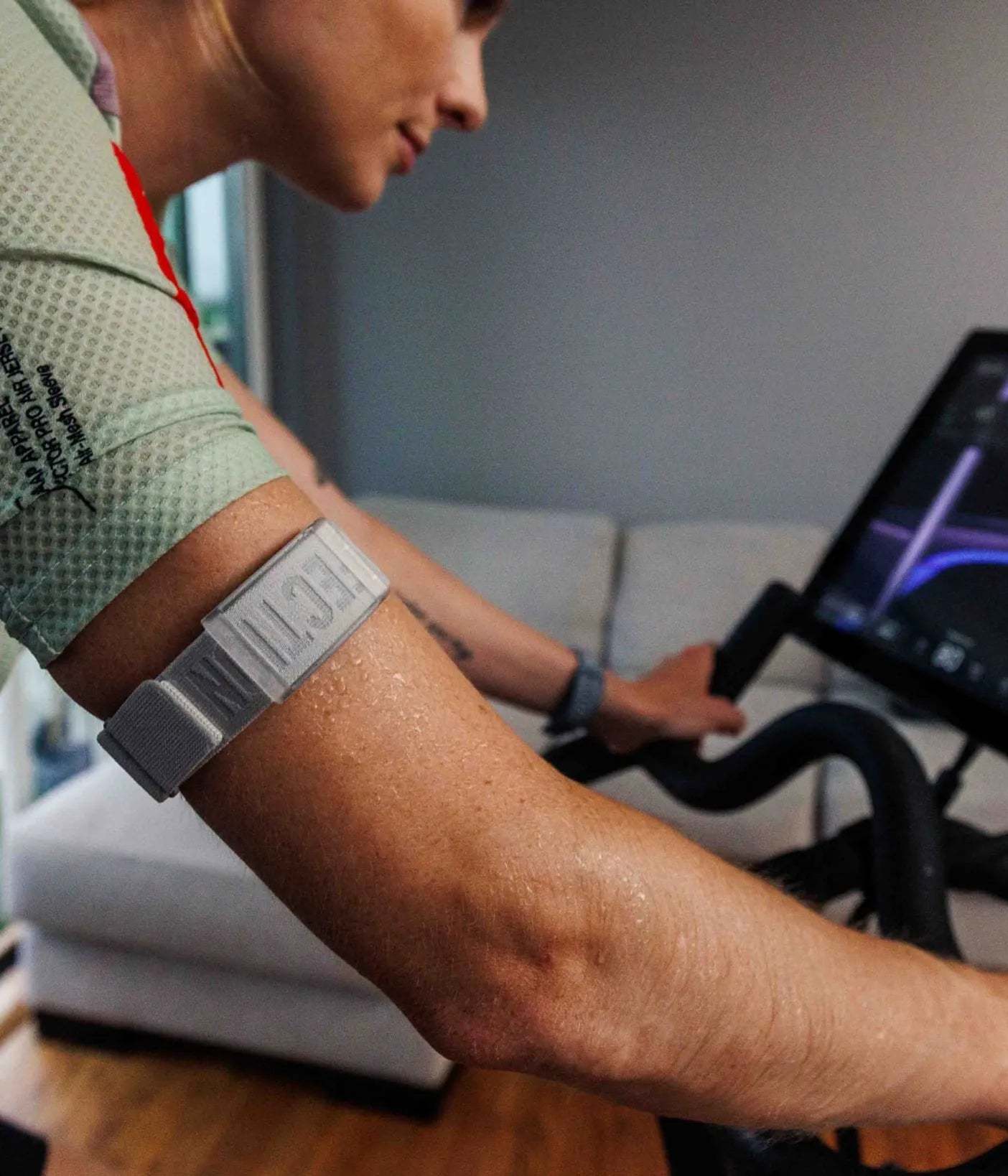 Fabric band sits flat around the arm with a textured surface to secure the fit.