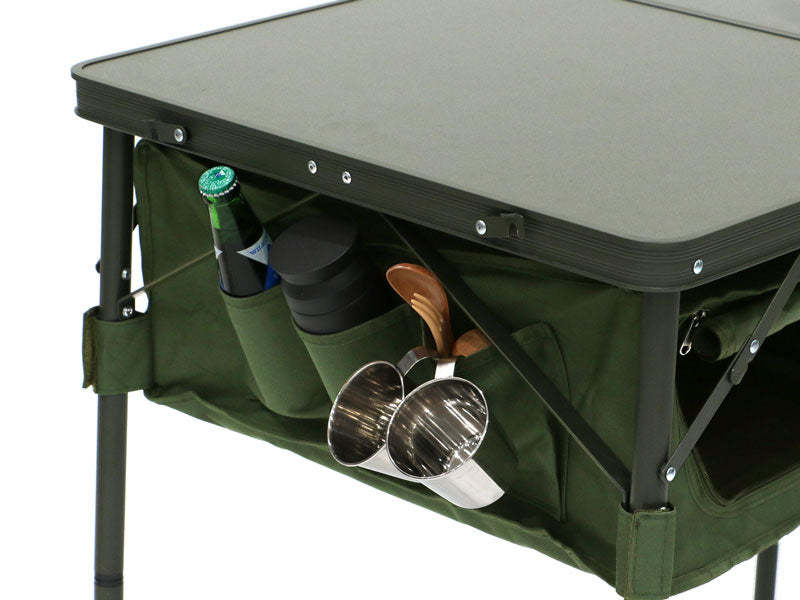 Outdoor table with large storage space under the table. It can be used as a convenient three-stage storage shelf if you put it in the cargo compartment of the car as it is. Even when camping, you can clean up your tent site by storing camping gear and accessories that tend to be cluttered.