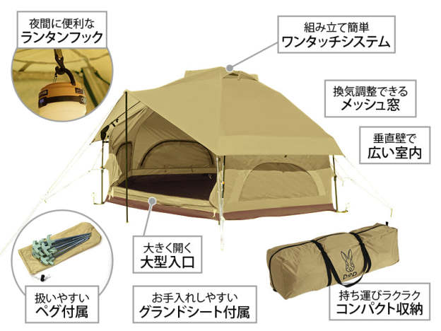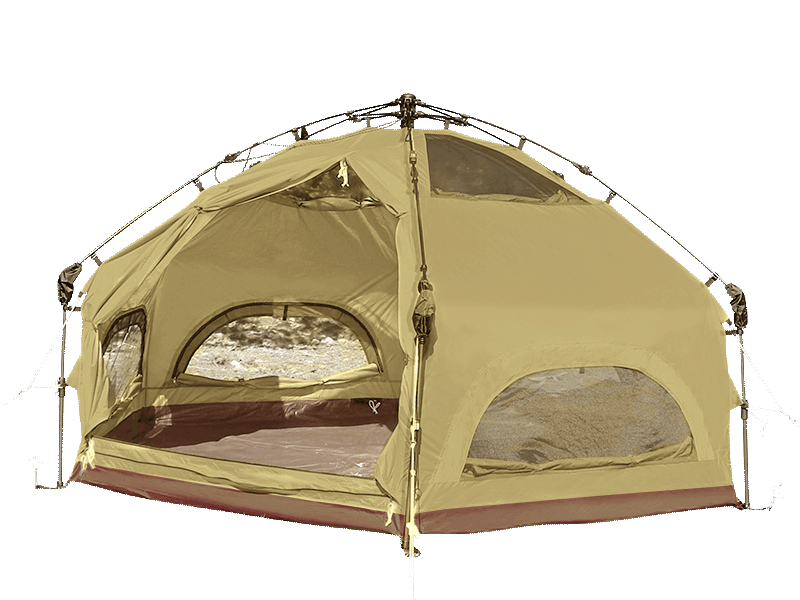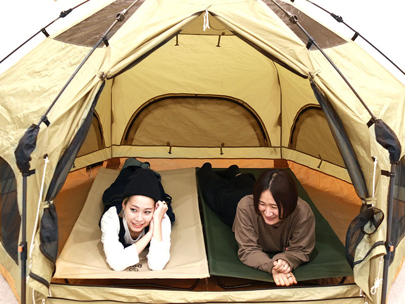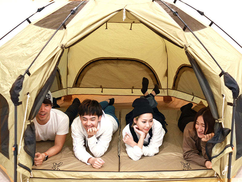 A bedroom tent that uses a one-touch structure for ease of handling and comfort. It has a structure with vertical walls and high comfort, and is devised so that it does not feel oppressive. It is a size design that can be used solo with plenty of room and can be used comfortably by 2 to 3 people, or can be used as a bedroom tent for 4 people including children.