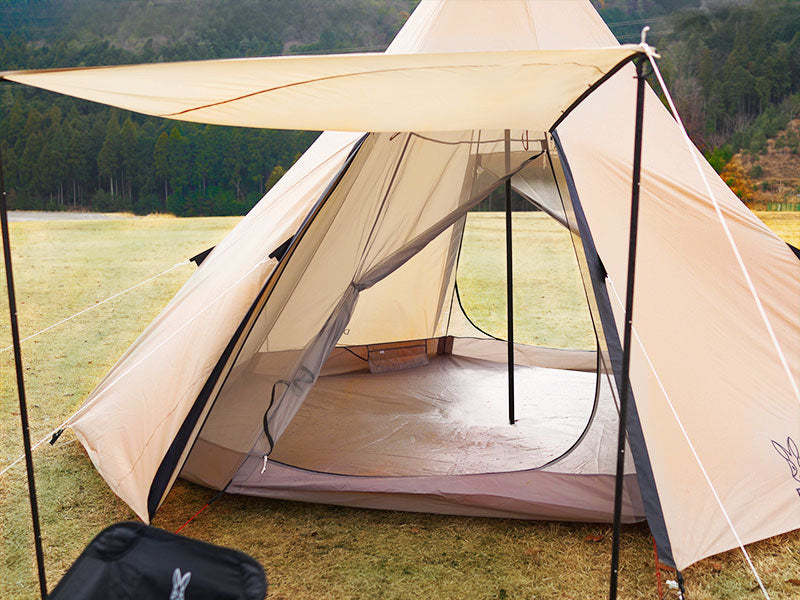 A one-pole tent that is completed by driving a peg and launching a pole.Although it has a space where up to 8 people can relax, it has a simple structure and is lightweight and compact. It has a stylish appearance that stands out even at campsites and festival venues.