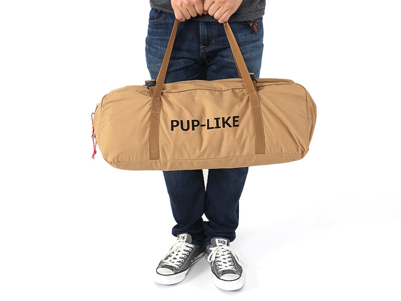 The Papfu tent is shaped like a Pap tent, but it is completed with a single tent, and by ensuring a larger tarp space than the Pap tent, we emphasize ease of use in solo camps. Also, unlike the 100% cotton fabric of Paptent, we used polycotton (a blended fabric of cotton and polyester) to improve waterproofness and lightness.
