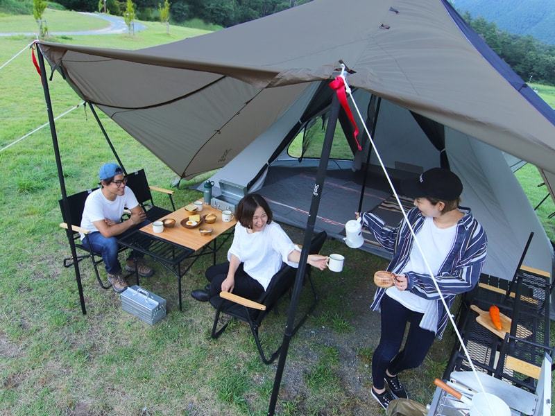 A 2-room one-pole tent with living room for all seasons. A two-room Big One pole tent that can secure a large inner space including a large living room with shelter.