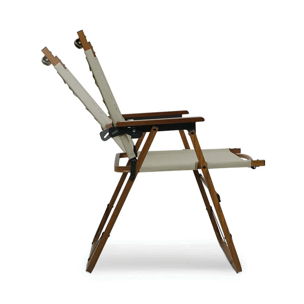 This foldable chair offers two levels of seat back height adjustment, ensuring customizable comfort. Constructed with an aluminum alloy frame for durability and portability, it features a stylish wooden handle for easy carrying. Complete with a dedicated storage bag, it's perfect for on-the-go outings, camping, or backyard relaxation.