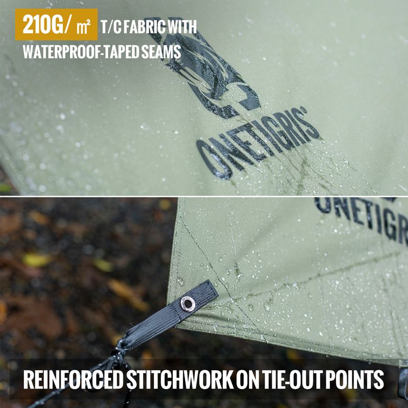 - What's come in the set: 1x OneTigris Aegis T/C tarp, 12x Guy-line, 12x Tent peg, 1x Tent peg sack & carry bag