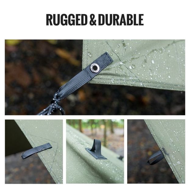 - 37 tie-out points for various tarp setup options with reinforced stitchwork and waterproof taped seams