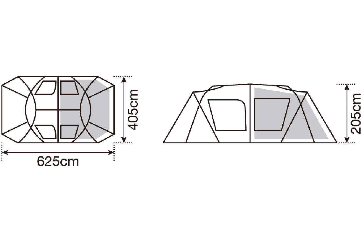 - Inner Tent: 68D Polyester Taffeta, Bottom: 210D Polyester OX, PU 1,800mm