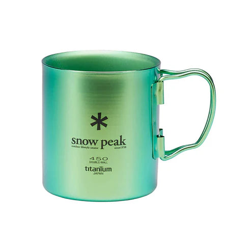 Snow Peak's ultralight double-wall titanium mugs done in brilliant anodised colours. This mug can be used directly over a flame (but may cause discolouration to the anodisation), and features folding handles for easy packing. Its lightweight properties mean it's a perfect travel companion to ensure you have a suitable mug for your morning tea or coffee.