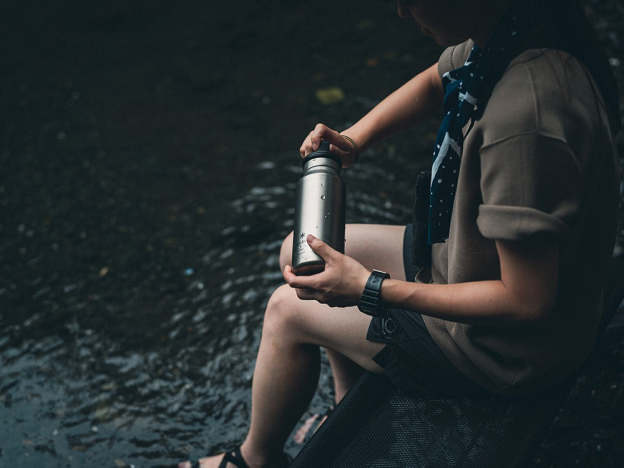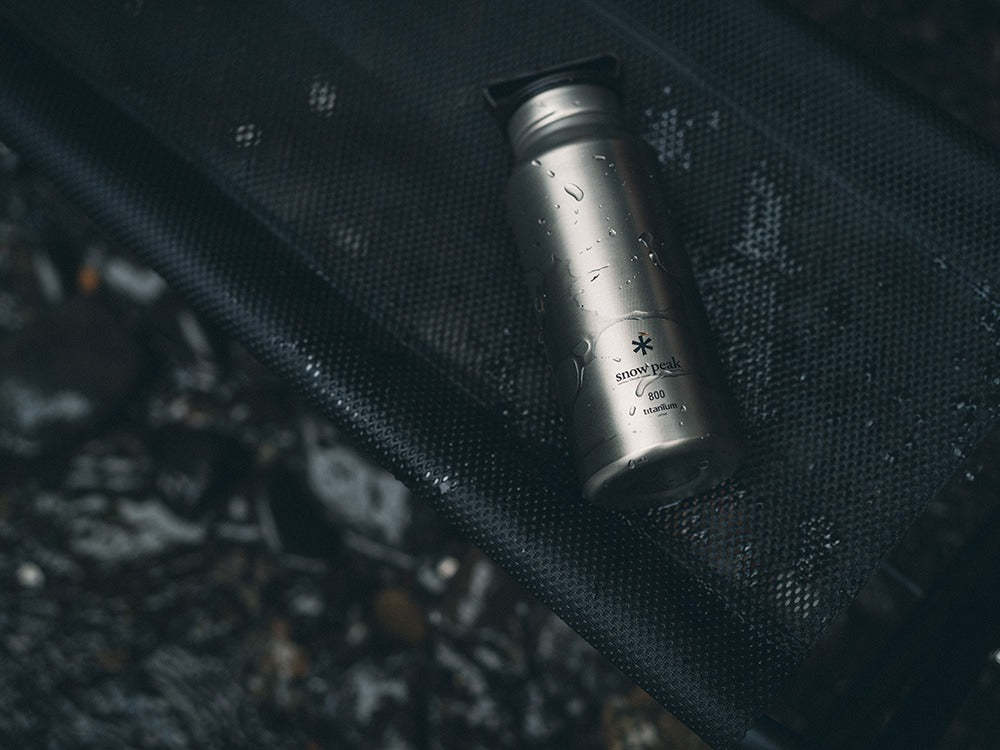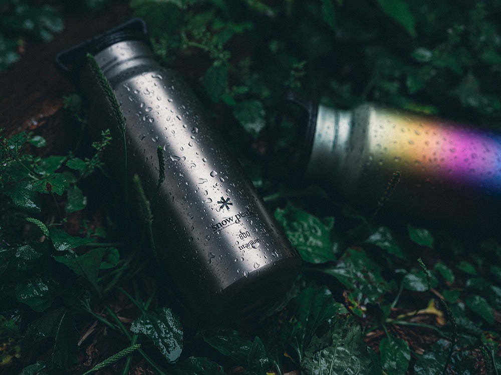 A titanium single bottle made using skilled manufacturing techniques. This lightweight and beautiful bottle is made from a single titanium plate without welding. The Aurora Bottle's beautiful color and shape are created from a single 1mm thick titanium disk. The bottom is 1mm thick to prevent dents from drops, the side is 0.4mm thick for lightness, and the mouth has a thickness of 0.8mm without a rolled rim for a comfortable drinking experience and easy cleaning. This complex shape is achieved using a single piece of titanium without welding, resulting in a lightweight and sturdy bottle with no color unevenness. It is a carefully crafted bottle made by skilled craftsmen in Tsubame Sanjo.