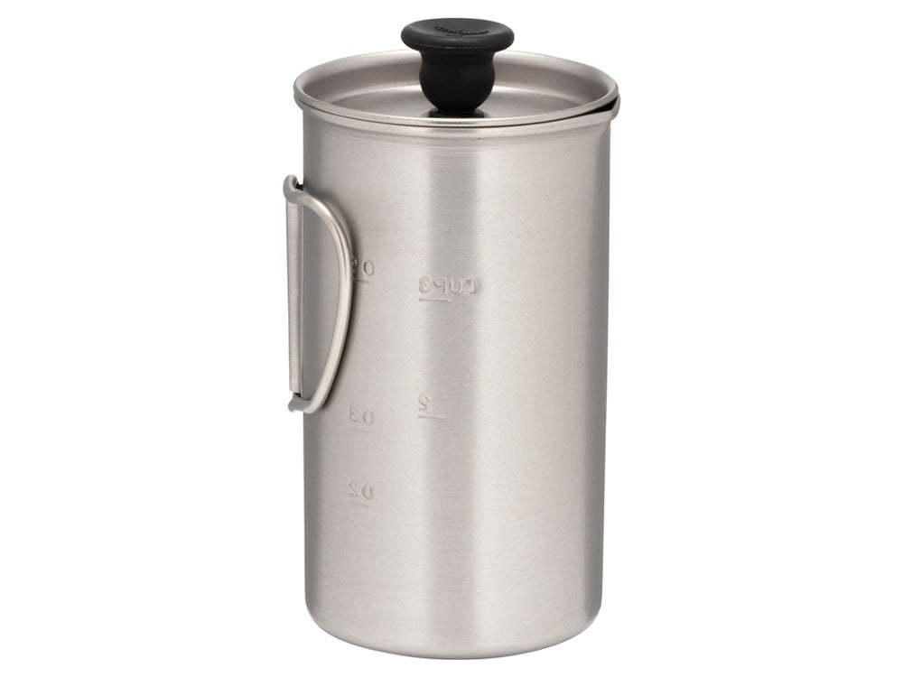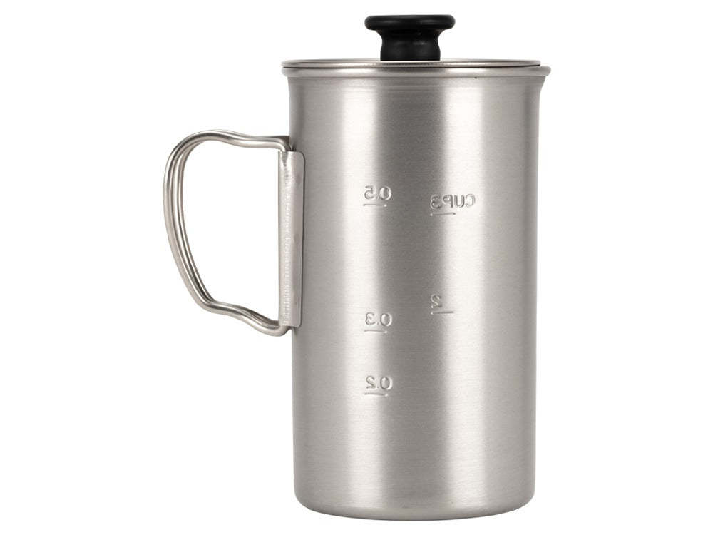 The Titanium French Press is made of Japanese titanium using a historic manufacturing process. The French Press offers an elevated coffee experience, whether at home or in nature. Single-wall titanium can be set directly over a heat source to boil water, simplifying the coffee-making process.