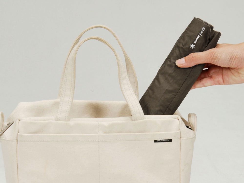 A lightweight Snow Peak umbrella that weighs just 150g and can easily be forgotten in a bag